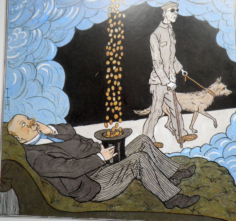 Abgedruckt in: „Simplicissimus“, Jg.31 Nr.50, s.676, halbseitig, Farben im Druck: Blau, Olivgrün, Ocker