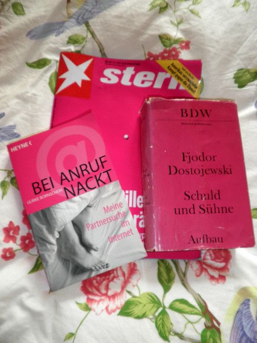 Ab gesehen von diesem abgedroschenen Provo-Spruch ist mir aufgefallen, dass ich, um zu entspannen neuerdings konsequent auf Bücher zurückgreife, deren Einband pink ist.