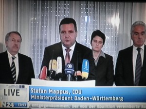 Soeben stellte sich der Baden-Würtembergische Ministerpräsident Stefan Mappus (CDU) einer Pressekonferenz.